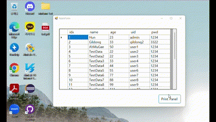 DataGridView만 있던 MainForm에서 Panel 컨트롤을 추가하고 Panel 안에 DataGridView를 배치하였다. 그리고 Panel 외부에 Button 컨트롤을 배치하여 Print 할 때 버튼이 보이지 않게 하기 위해 일부러 영역을 분리했다.